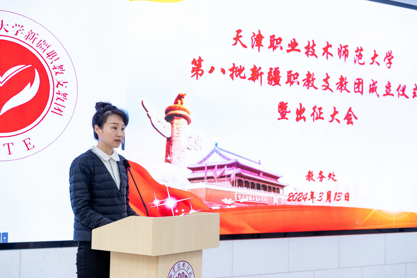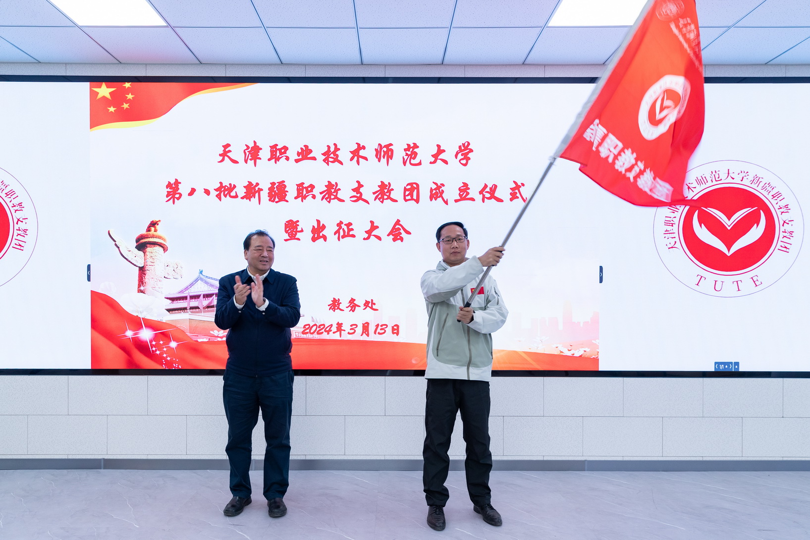 会上,教务处副处少周朝宣读了《对于诞生天津劳动技能师范年夜教第8批新疆职教收教团的关照》,党委构造部副部少下楠、校团委文告刘晶别离揭橥诞生第8批新疆职教收教团姑且党收部战姑且团收部。