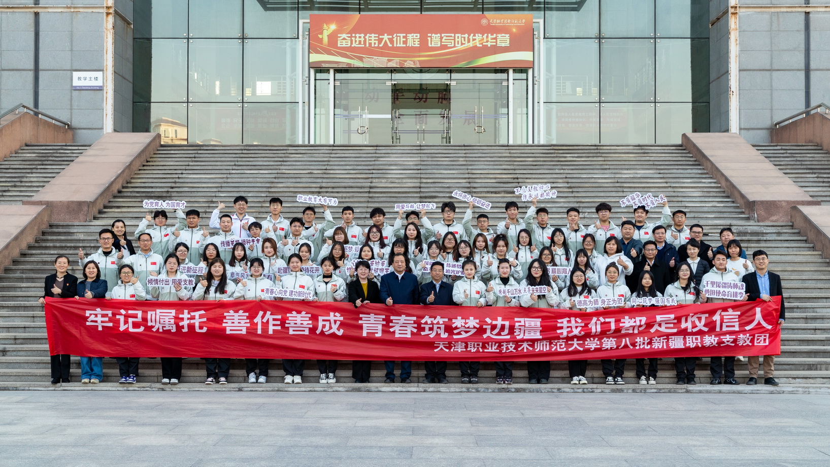 日下战书,天津做事技能师范年夜教第8批新疆职教收教团创造典礼暨出征年夜会正在第两教育楼102课堂举办。校党委文告弛金刚刚,校党委常委、副校少蔡玉俏列席年夜会。聚会由教务到处少杨慧把持。